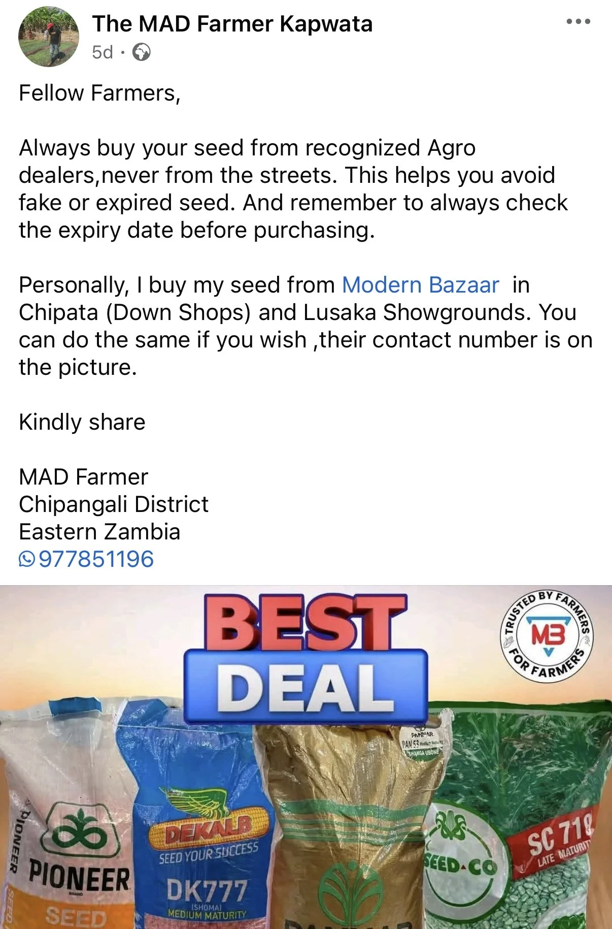At Modern Bazaar, we believe farming deserves honesty, reliability, and results. For decades, farmers across Zambia have chosen us because they know our focus goes beyond sales — it’s about partnership, progress, and fair value.
